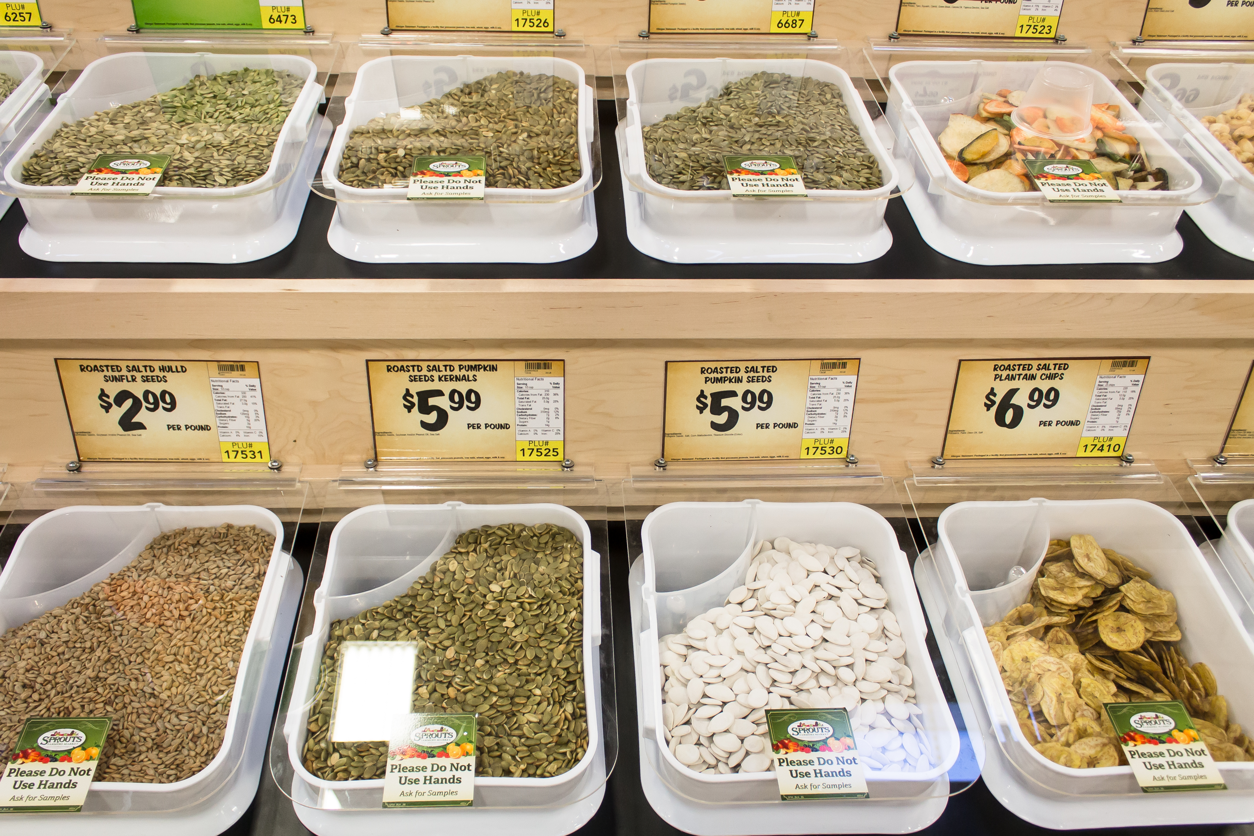 One of my favorite sections of the store is the bulk foods area. I love nuts and dried fruits and eat both almost every day, so I can’t wait to check out all of the options they have. In addition to nuts and dried fruits, they also sell beans, grains, flours, granolas, candies, and chocolate covered everything under the sun! You can get your steel cut oats, chocolate covered pretzels, rice, and dried figs all in the same place. This is a dream come true for people like me who like a little of everything, but don’t go through it fast enough to buy a full container. They also have bulk spices! How often do you make a recipe that calls for one tablespoon of a spice you don’t have so you either buy an entire bottle, which sits on your shelf for a year, or just skip the spice altogether? Bulk spices fix that problem! If you just need one tablespoon, you can take just one tablespoon.
