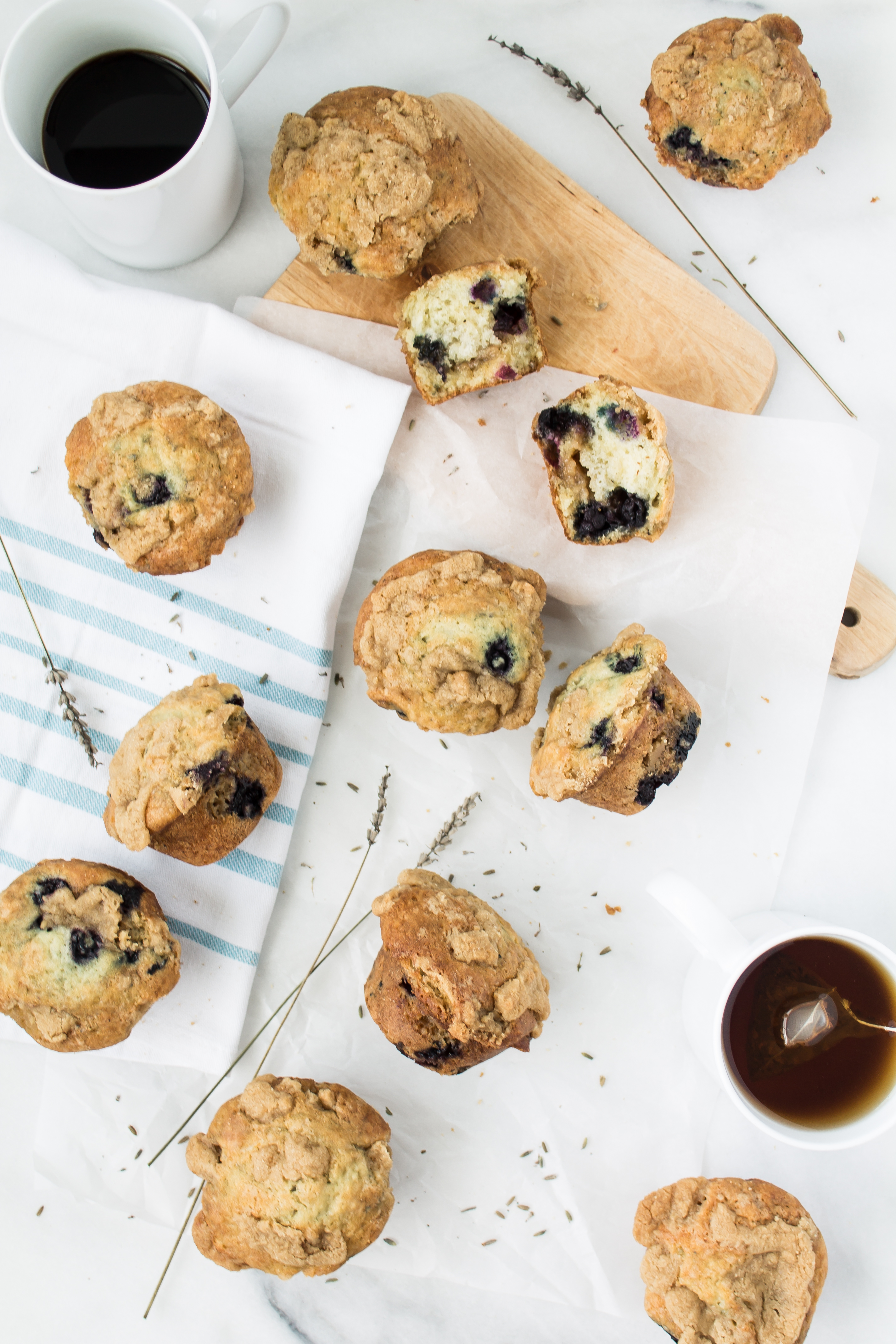 Growing up, I vividly remember sleepovers at my best friend’s house with movies and chatting late into the night, then waking up to make blueberry muffins in the morning. As elementary schoolers, this consisted of mixing the “just add milk” blueberry muffin mix together and waiting impatiently in front of the oven as the fragrant muffins cooked up golden tops. Nowadays, I wouldn’t be caught with that powdered mix, not because it isn’t good, but because my eyes have been opened to the amazing flavors and textures of homemade blueberry lavender streusel muffins.