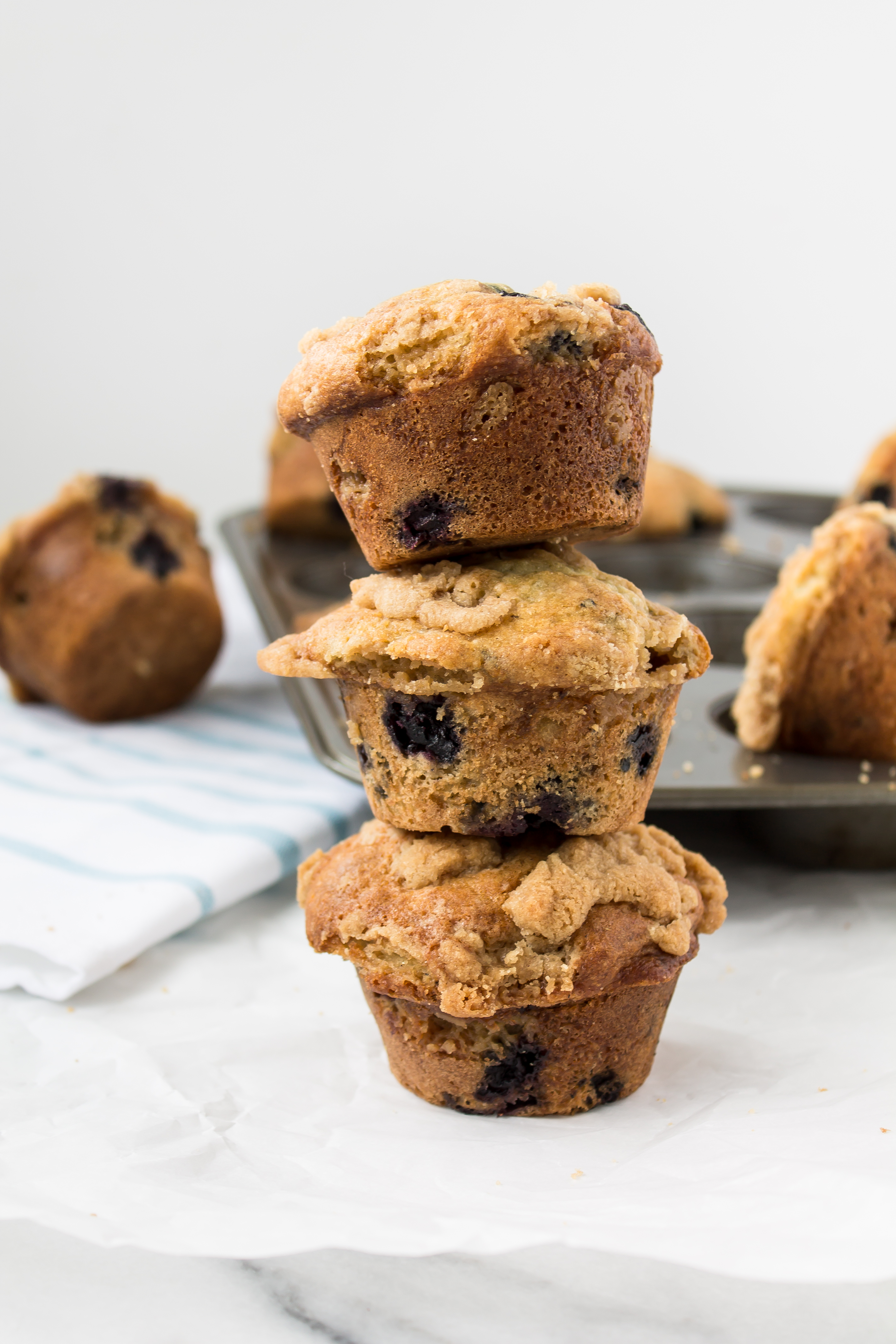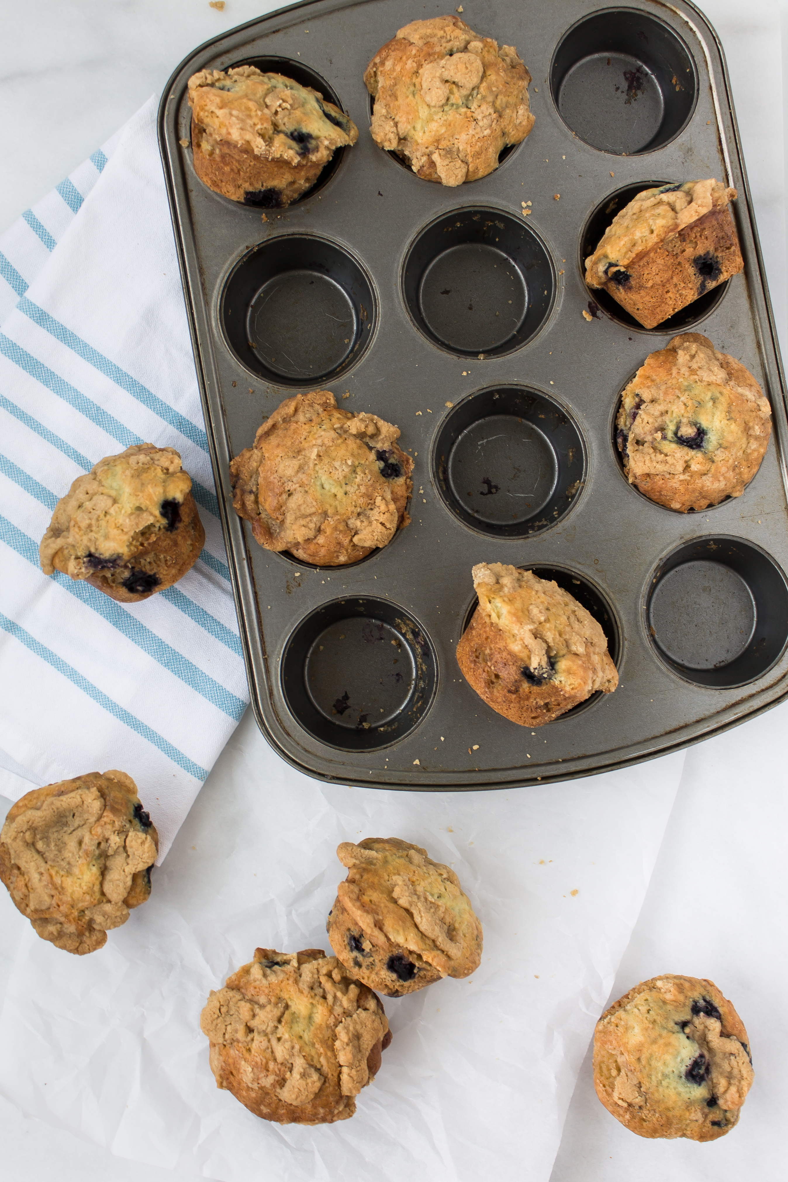 I love the contrast of the juicy blueberries against the light crumb of the muffin and the crunch from the sweet streusel topping. The streusel is simple and cinnamony, and you may want to eat most of it before it even goes in the oven. This is always my dilemma.