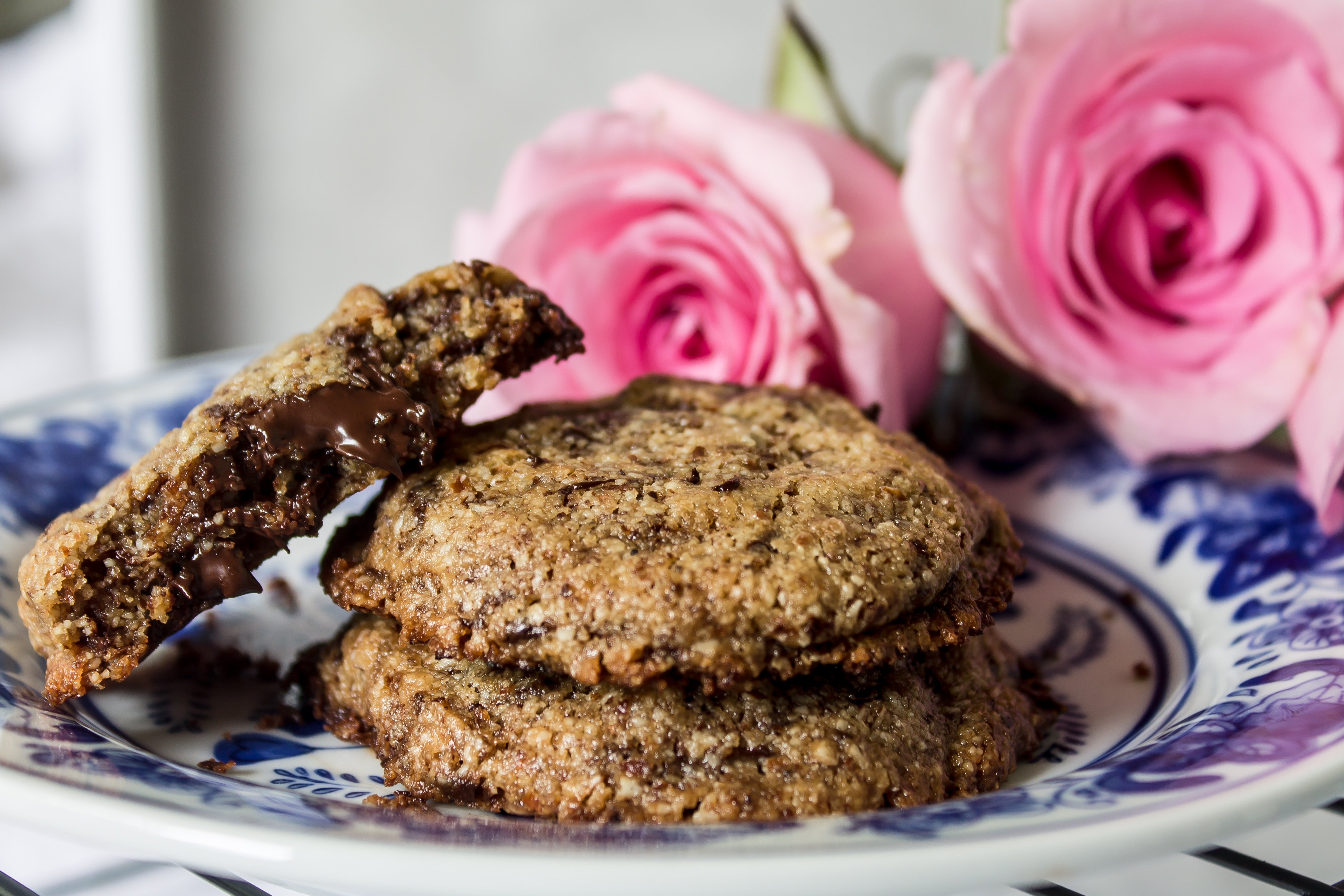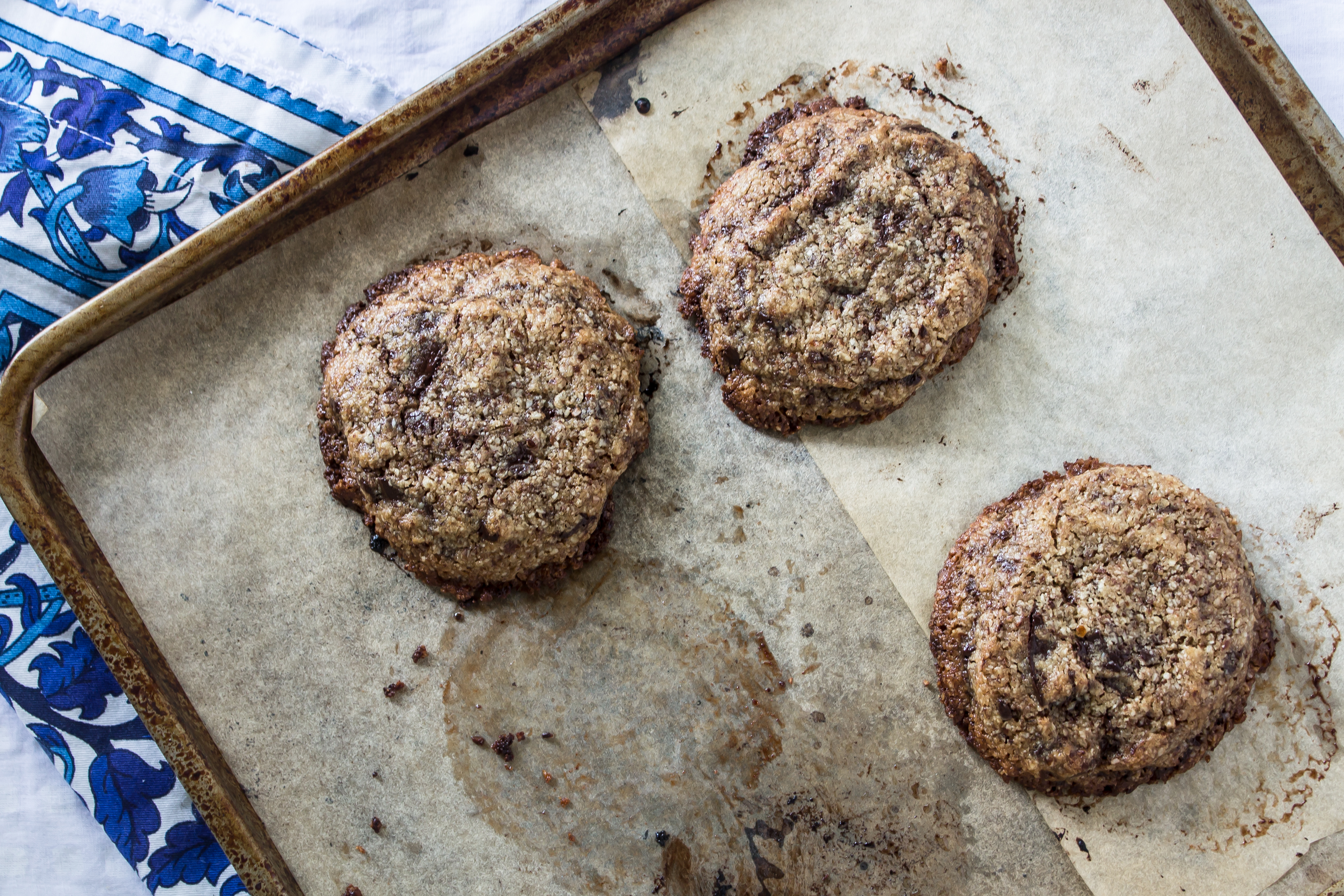 We’re branching out today. These chewy, tender cookies are filled with chocolate puddles and are gluten free! Stay with me here, you’ll like them whether you fill your diet with gluten or leave it out.