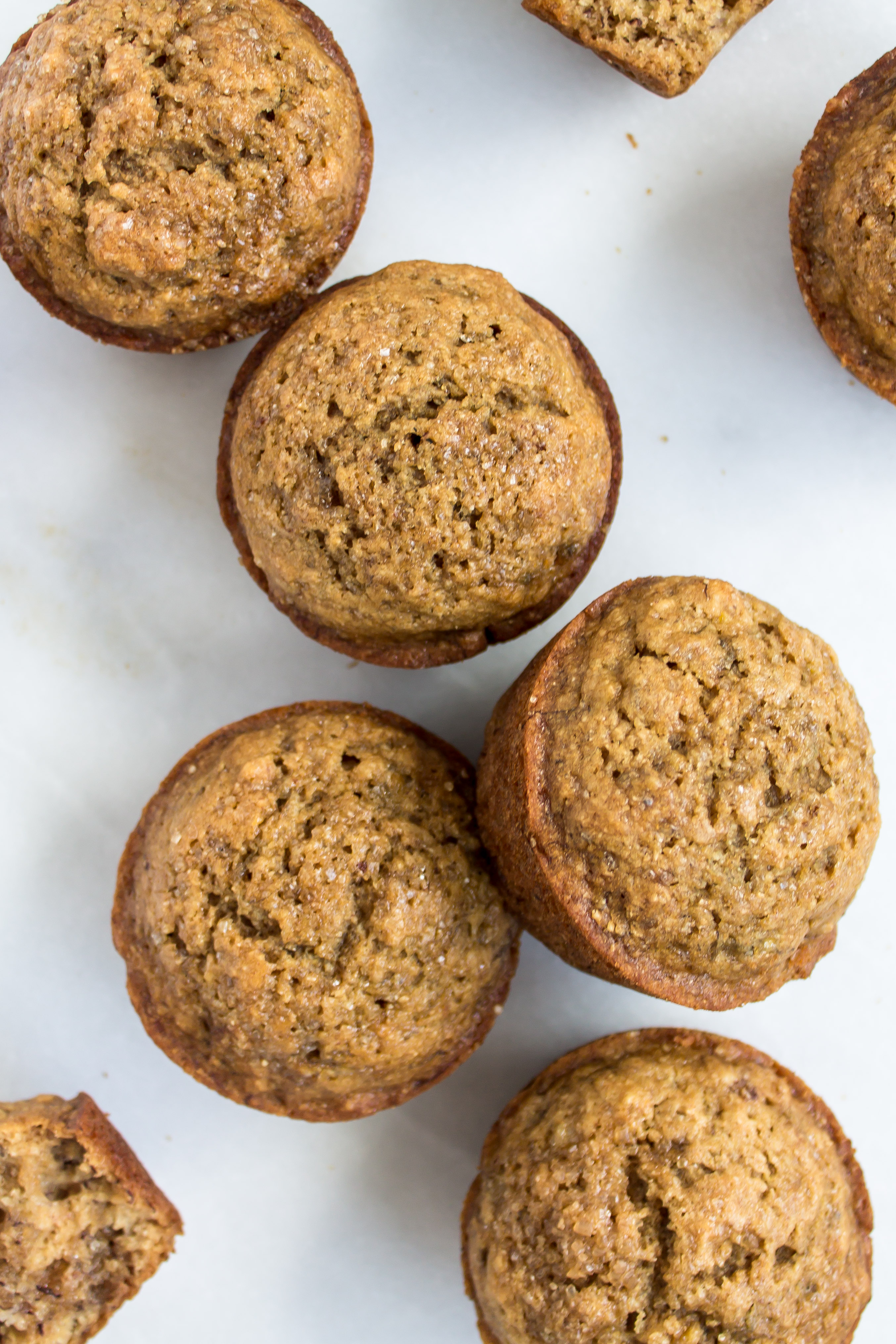 Pour the batter into the prepared muffin pans, filling each cup about 2/3 full. Optional: lightly sprinkle the tops of each muffin with turbinado sugar. Bake the muffins for 15-22 minutes, or until a toothpick inserted in the center of the muffins comes out clean. Allow the muffins to cool a bit in the muffin pan before serving. The muffins will keep at room temperature in an airtight container or bag for 2 days, but also freeze well.