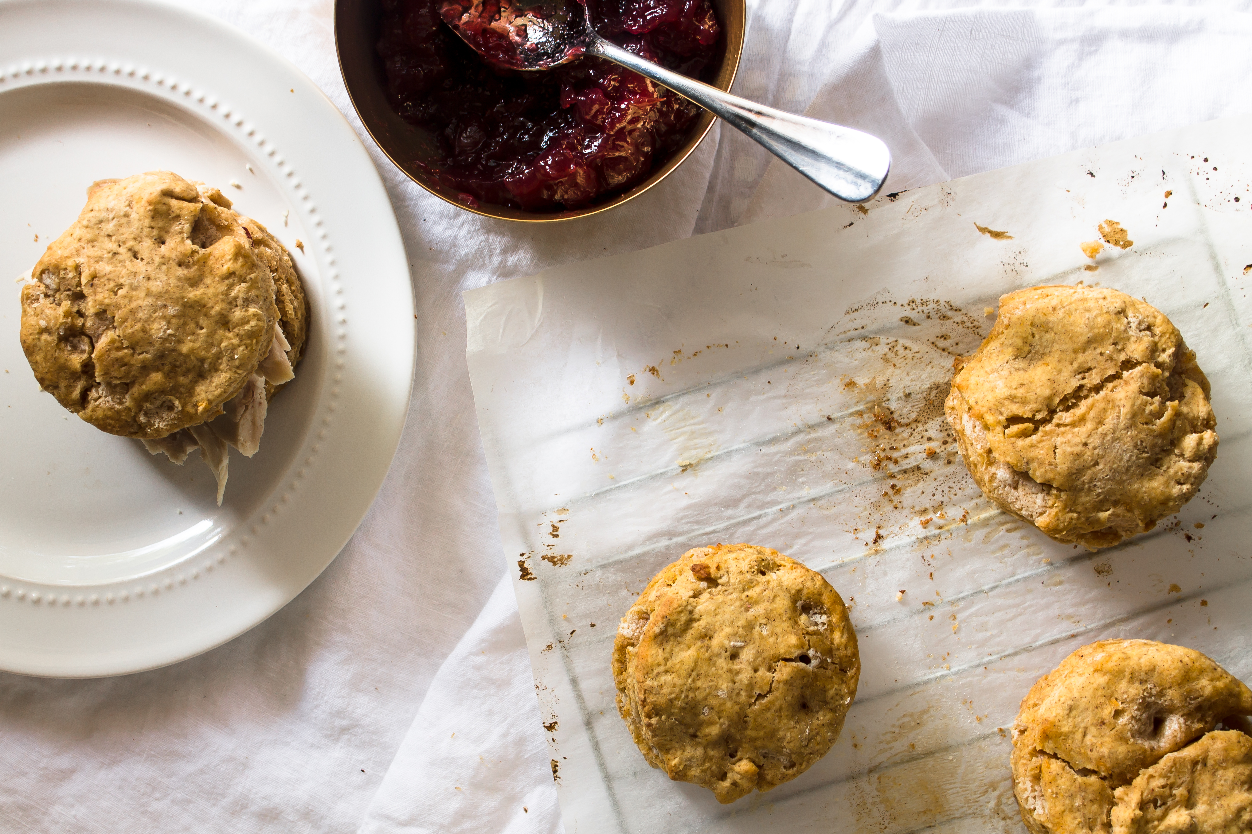 They are just slightly sweet, and the optional course sugar topping adds an extra crunch to the otherwise pillow-soft biscuits. Eat them on their own with a pat of butter, or top with turkey, cranberry sauce and some cheese leftover from your appetizer plate for the perfect leftover meal. Melty brie or a sharp white cheddar would both be delicious.