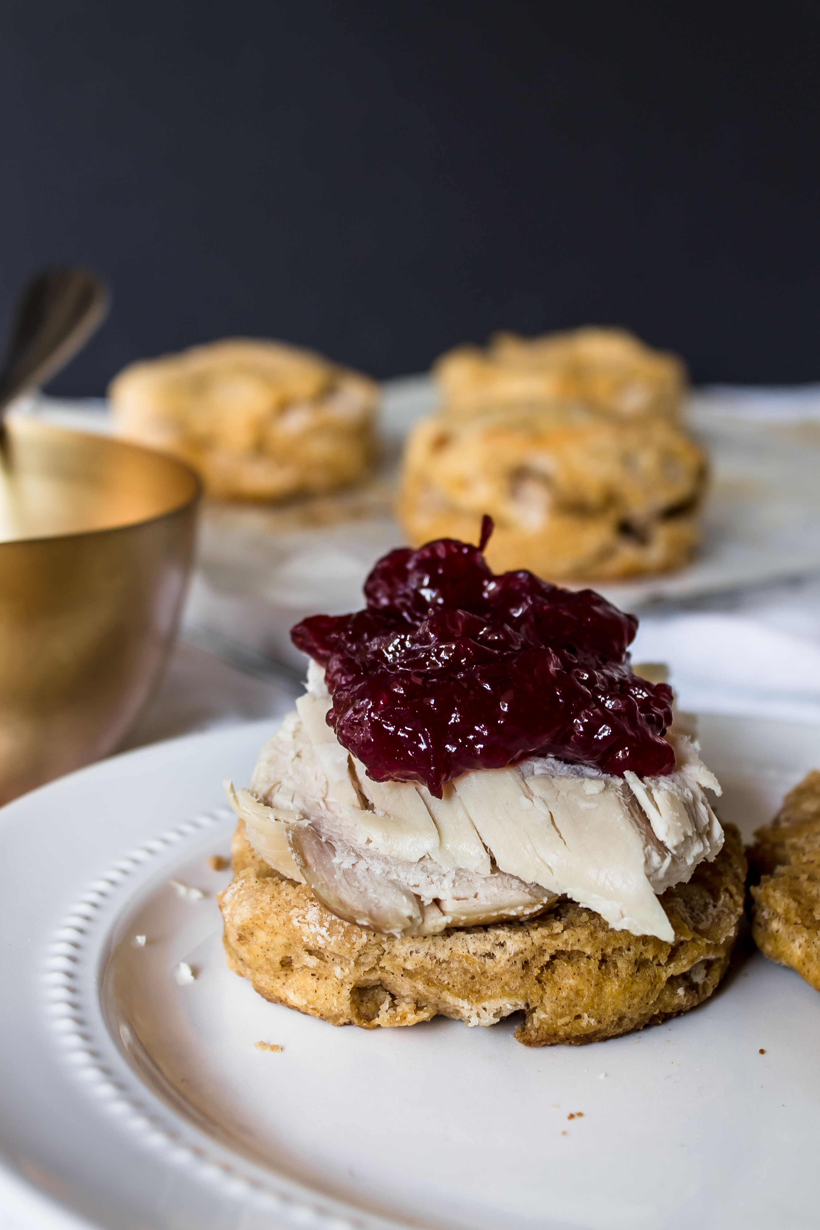 We always have leftovers from every dish after Thanksgiving dinner. Like many Americans, we stick them all in the fridge and pull them out for lunch the next day for some leftover sandwiches. We usually use plain ‘ol sandwich bread, but what if we could incorporate the thanksgiving flavors in a wonderfully fluffy biscuit for a delicious turkey, cranberry, sweet potato combination all the way around? We can, we can! Enter sweet potato biscuits.
