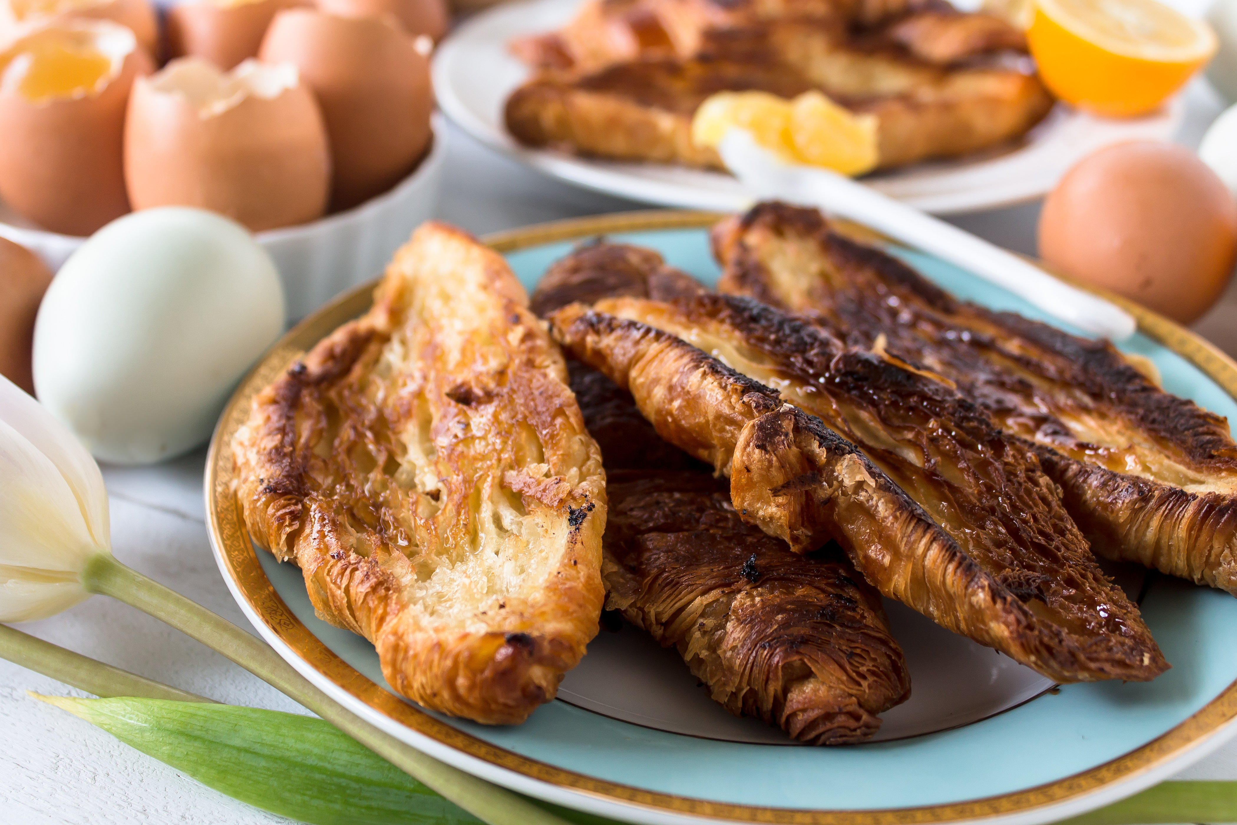 Caramelized croissant idea based on caramelized brioche in February 2016 Bon Appetit magazine