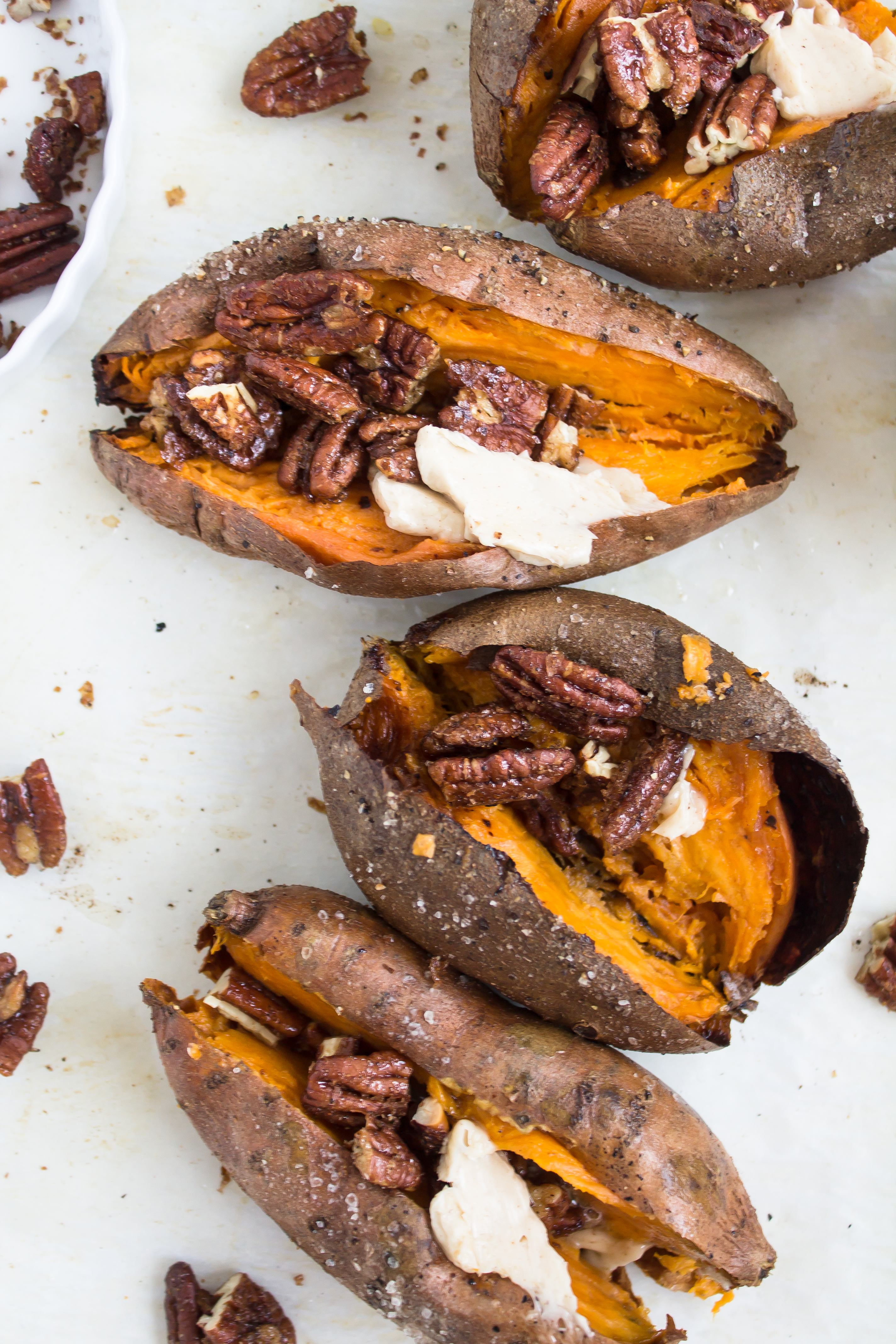 Another of the most popular recipes this year was slow roasted sweet potatoes with spiced maple pecans and maple bourbon butter Their instagram popularity (and the number of times I made them again for lunches and dinners) proved that they deserved the spotlight.