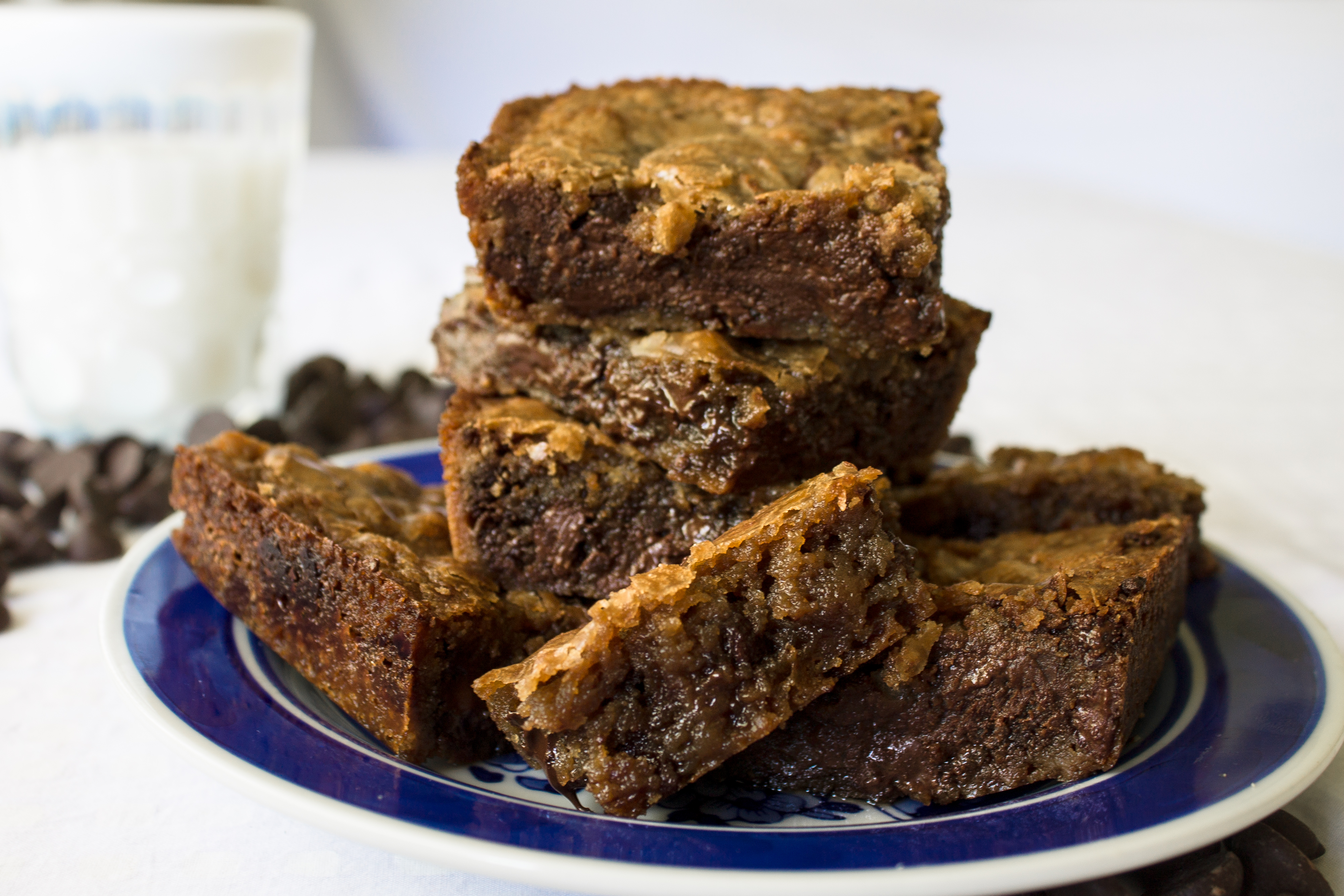 These blondies perfectly convey the iconic butterscotch flavor that comes from the brown sugar, butter and vanilla.  Chocolate oozes out of the undeniable soft, gooey treat.  The flavor is complex, but the recipe is so simple.