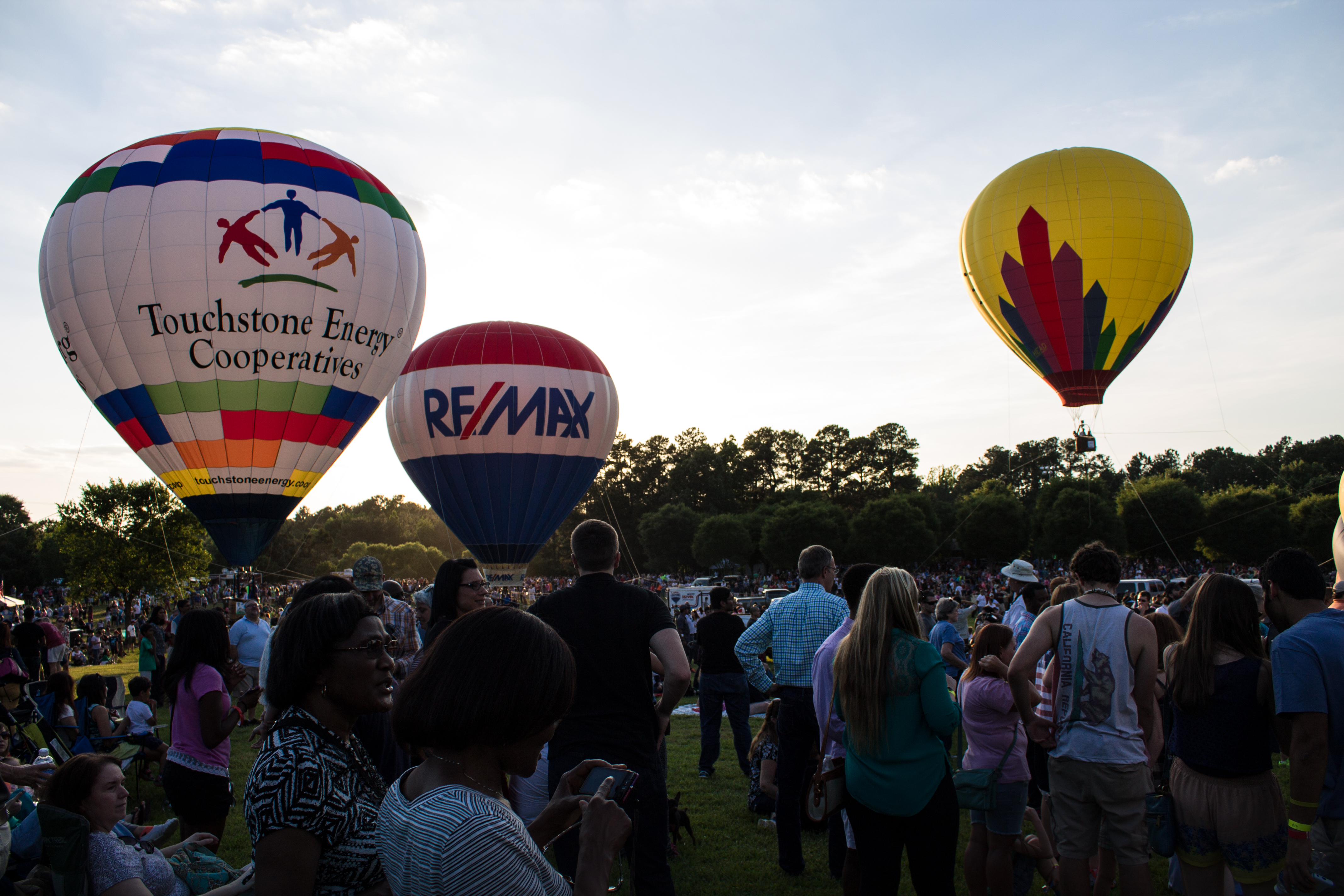 Since that trip, I have added the Albuquerque Hot Air Balloon Fiesta to my bucket list. I think it would be amazing to see 500 plus hot air balloons in one place, with all of their colors and glowing flames lifting off together. Over Memorial Day weekend, our local news station hosted their inaugural Freedom Hot Air Balloon Festival with two locations and 40 balloons. We went on Saturday night and LOVED IT! We all took so many pictures! Since the light was changing as the sun went down the views changed too.